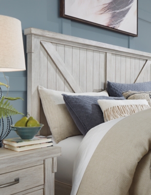 50 beautiful coastal chic bedroom retreats. Don't mind us drooling over this bedroom makeover! Panel bed features planked faux barn door panels with accenting metal hardware. Brashland linen cal king bed w/ footboard bench. There are also nightstands which are strategically placed besides the bed on both sides to provide space for the. Brashland queen upholstery bench footboard in linen. The bed can be of different sizes depending on the preferences and the available space. The panel bedroom set is made up of a panel bed which has both the footboard and a headboard. The brashland queen bed with footboard bench by signature design by ashley at royal furniture in the memphis, jackson, southaven, birmingham, tuscaloosa area. Cases feature framed and planked tops with raised center panel. Nashbryn 6 piece panel bedroom set. Coastalcraftymama's bedroom makeover in collaboration with ashley homestore! Fully finished english dovetailed drawer boxes with ball bearing side glides.